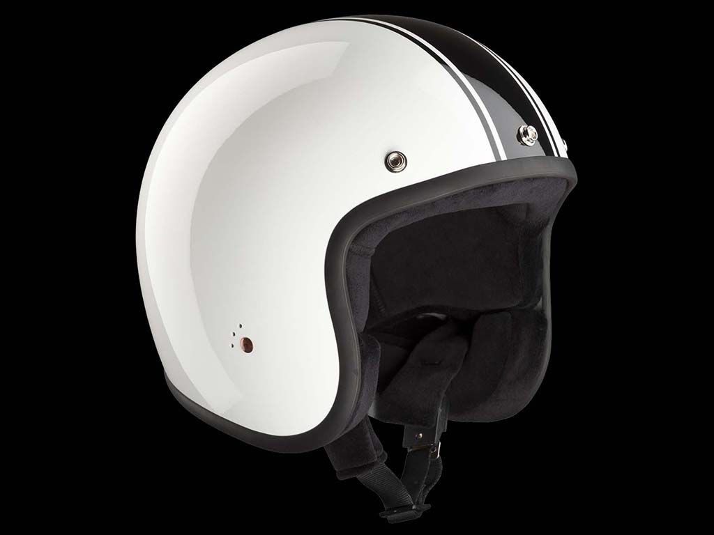 La coque en polymère haut de gamme avec son design blanc avec des bandes noires fera des envieux, gageon le. petit bémol il est non conformes aux normes ECE 22-05.