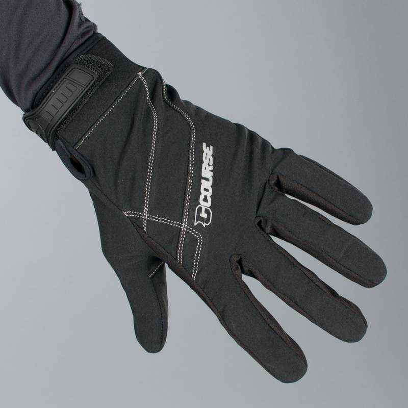 Fait de matériau coupe vent souple avec un rembourrage fin en polaire à l'intérieur. Du Neoprene, doux et confortable autour de votre poignet avec une partie en caoutchouc assure un ajustement confortable et sur. La paume est renforcée avec un cuir synthétique mince. Un superbe logo Course est également présent sur le gant.