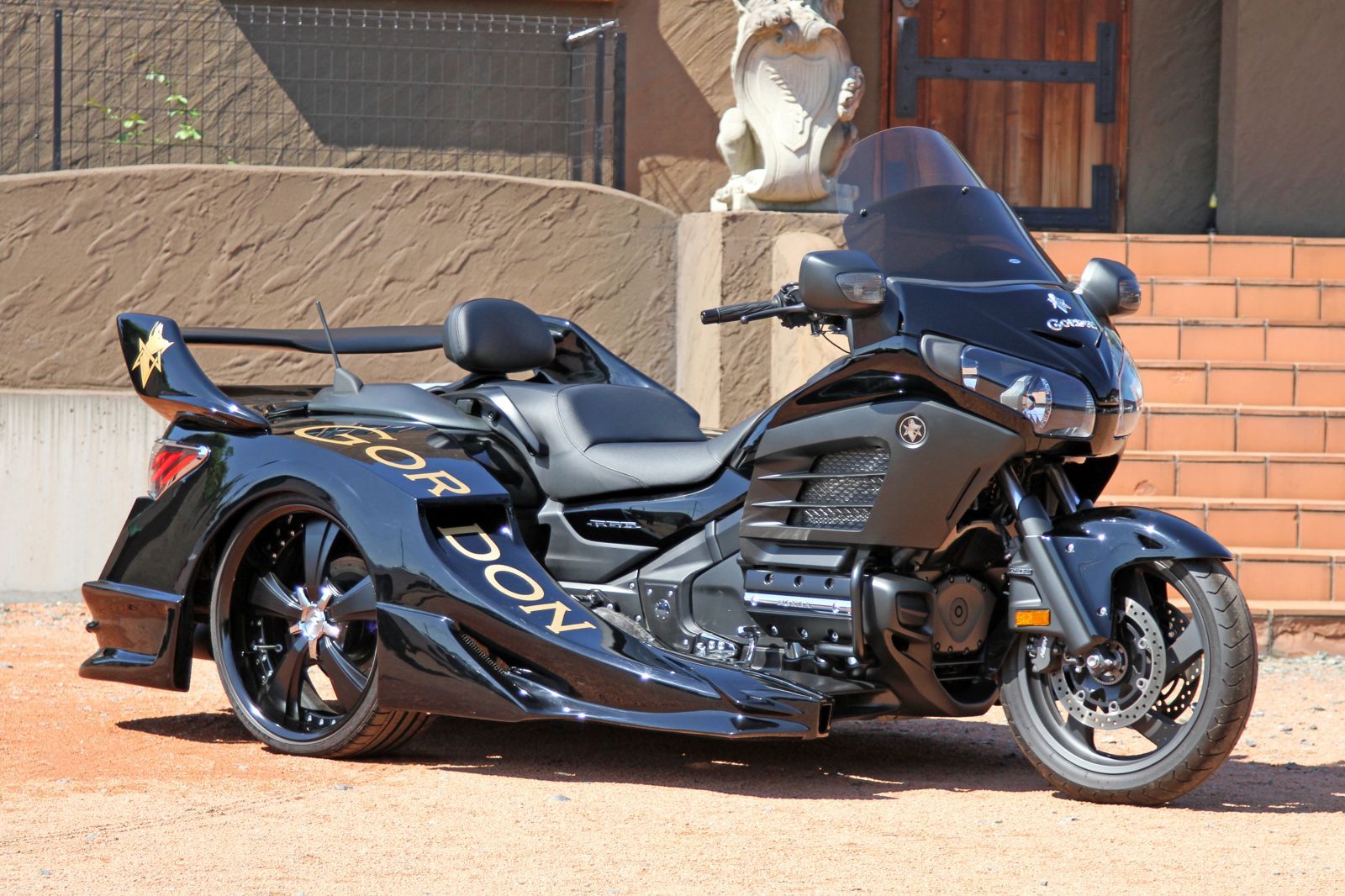 Le deux-roues servant de base au trike est le plus souvent une moto de grosse cylindrée, style chopper, pourvue de pneus arrière très larges. C'est très stable, tellement que quand vous tournez, c'est la surprise... ça ne penche pas du tout. Autre surprise dans les rues un peu étroites : le devant passe, mais il ne faut pas oublier l'arrière qui est beaucoup plus large. Pensez à prendre les virages large.
