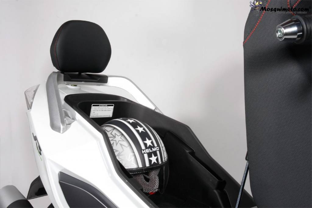 Le tableau de bord du S3, à la fois analogique et numérique, est complet et élégant, avec un rétro-éclairage bleu luminescent. La console avant et le couvre-guidon en aluminium brossé ajoutent une touche de sophistication, abritant trois compartiments pratiques : une boîte à gants à droite, un mini coffre central avec prise 12 volts, et à droite, la trappe à essence, verrouillée par la Smart Key.